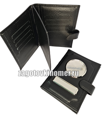 - кожаная обложка из натуральной кожи "флотер" с металлическими вставками ( 2в1 с отделом под паспорт на застежке + отделы под карточки)