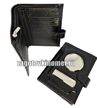 Обложка - портмоне 3в1 с кнопкой на молнии из натуральной кожи "игуана" в комплекте с линзами. "ПРЕМИУМ"